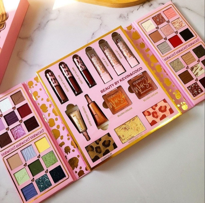 پکیج فول میکاپ همه کاره ارایشی cevincoco ( سایه ،رژگونه ،رژلب ،هایلایتر ،رژگونه،برق لب)