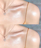 درخشش و زیبایی: ذرات شاین نوری ملایم و جذاب به پوست میدهد، مخصوصاً زیر نور خورشید یا نور مصنوعی.