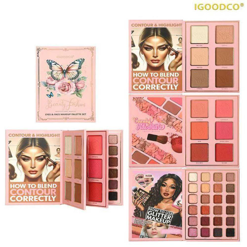 پالت چندکاره آرایشی آیگودکو شامل سایه و هایلایتر و رژگونه و کانتور